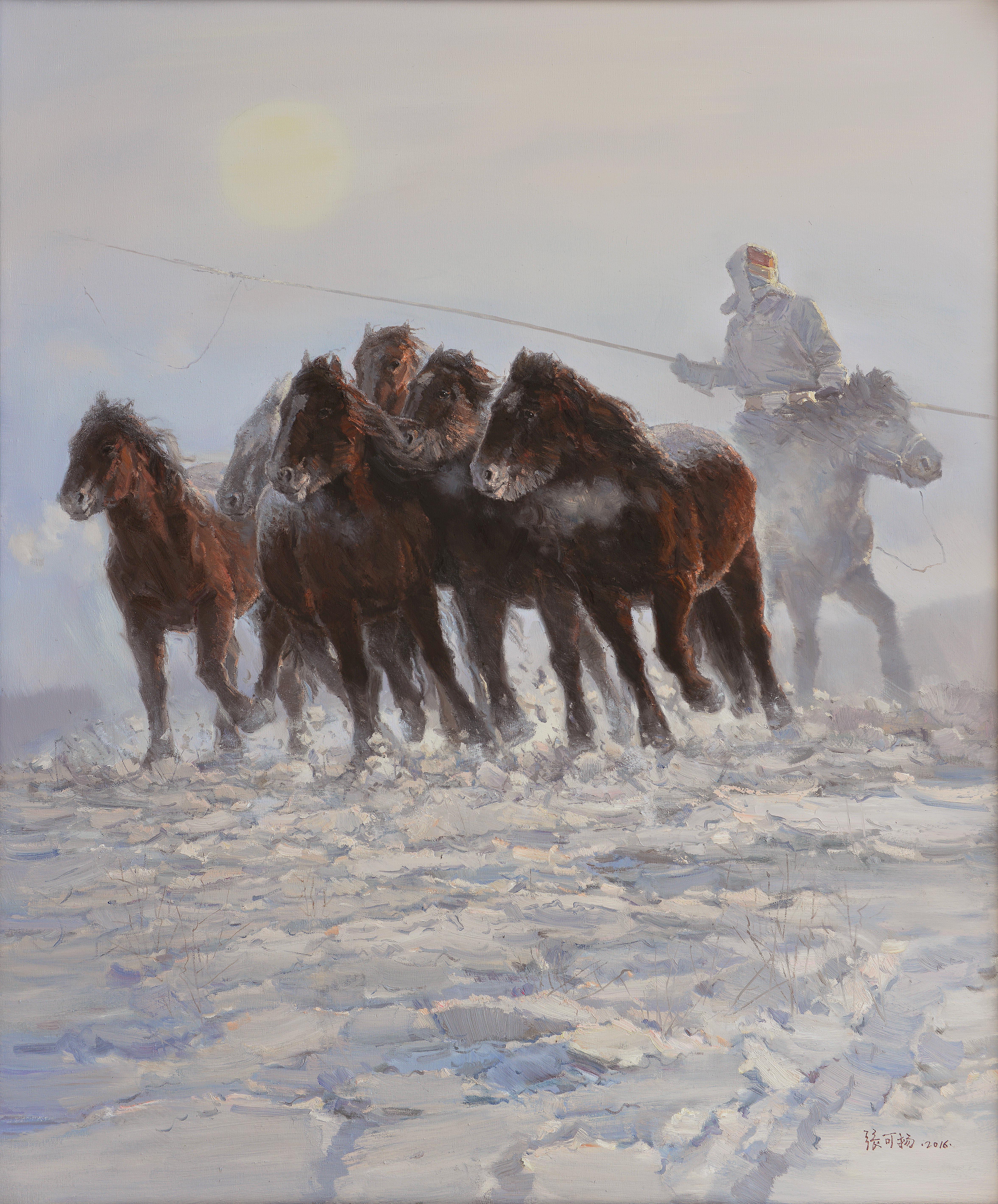 張可揚(yáng)《天驕飛雪邀明月》油畫(huà)