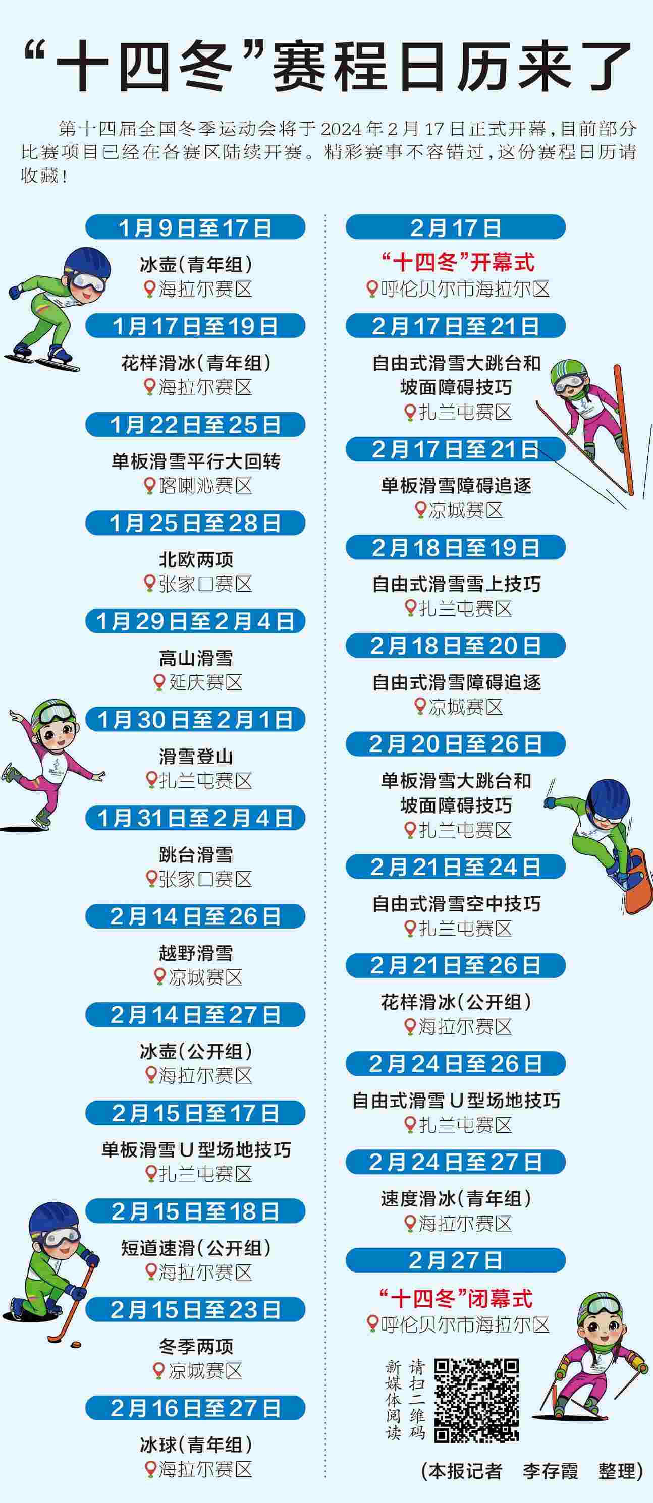 第十四屆全國(guó)冬季運(yùn)動(dòng)會(huì)將于2024年2月17日正式開幕,目前部分比賽項(xiàng)目已經(jīng)在各賽區(qū)陸續(xù)開賽。精彩賽事不容錯(cuò)過,這份賽程日歷請(qǐng)收藏!