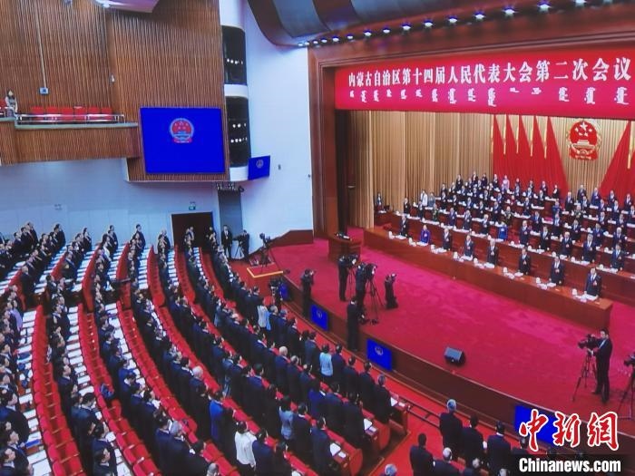 圖為內(nèi)蒙古自治區(qū)十四屆人大二次會(huì)議現(xiàn)場(chǎng)。 李愛平 攝