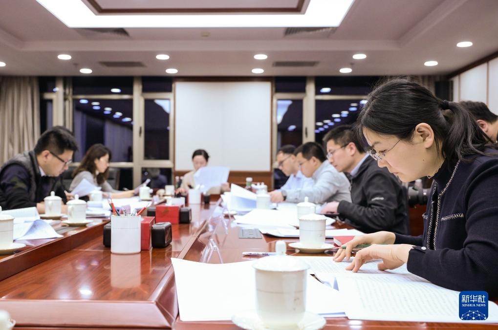 3月6日,財(cái)政部工作人員根據(jù)代表的意見(jiàn)建議對(duì)預(yù)算報(bào)告進(jìn)行對(duì)照、研究。新華社記者李賀攝