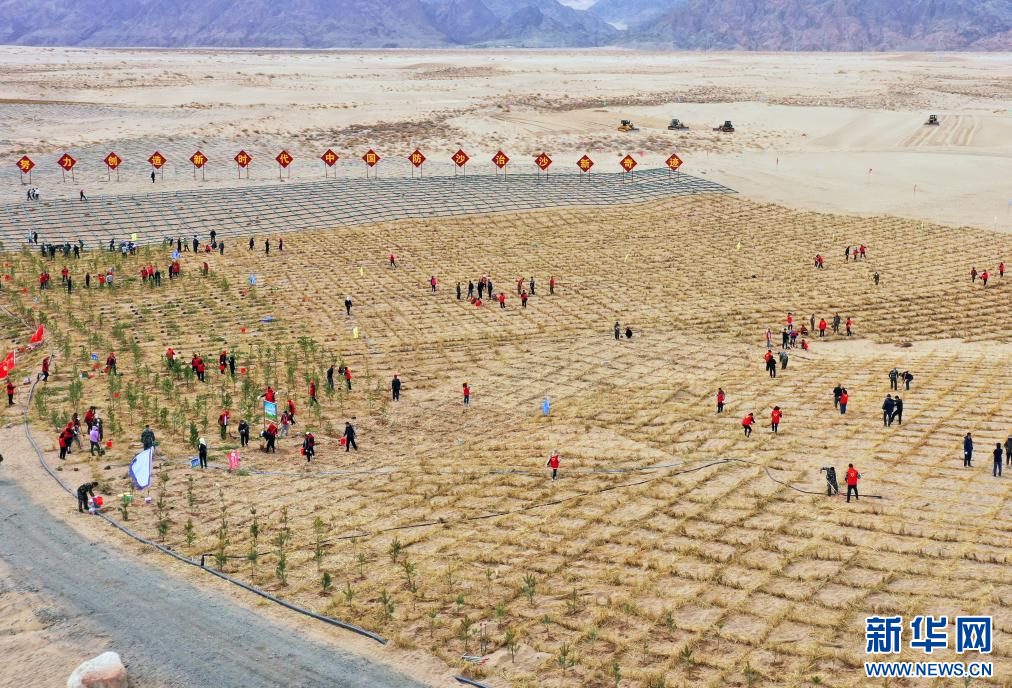 內(nèi)蒙古黃河“幾字彎”地區(qū)開(kāi)展植樹(shù)造林工作。新華社記者李云平 攝