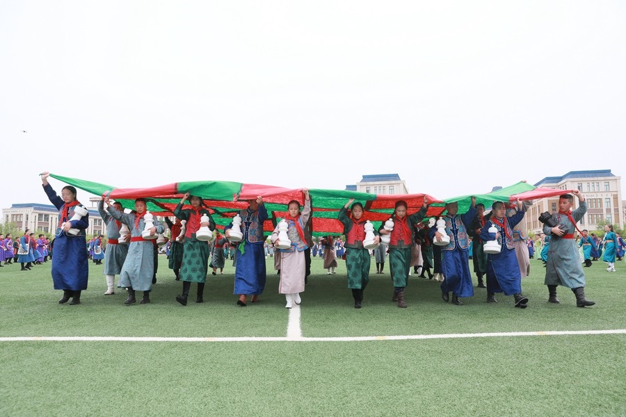 而作為三大英雄史詩之一的《江格爾》,被稱為“震撼人心的偉大史詩”之一,是中華民族的寶貴財富。學(xué)校此次推出的千人《江格爾》,就是要把這部史詩保護(hù)好傳承好,使之發(fā)揚光大。