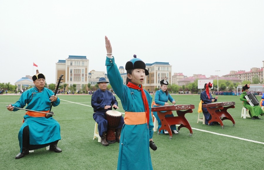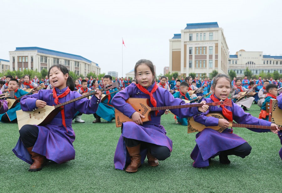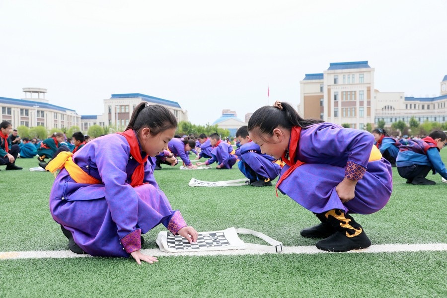 “今天參加4個‘千人文化’特色課程感到非常高興和開心。這4個課程讓我們的文化素養(yǎng)得到質(zhì)的提升,愉悅了身心?!蔽迥昙?25班的哈斯寶勒爾剛剛參加完特色課程展示。哈斯寶勒爾表示,這4個課程,比如玩象棋的話,可以提升自己的思維邏輯,讓自己的思路更加清晰,能夠提升學(xué)習(xí)成績;練習(xí)筷子舞,可以讓我們的心情變得更加愉悅,通過練習(xí)跳舞,讓我們身體的柔韌性更強(qiáng);唱江格爾,能鍛煉我們的唱歌能力,還能讓我們把非物質(zhì)文化遺產(chǎn)傳承下去;踢足球可以鍛煉我們的體能。