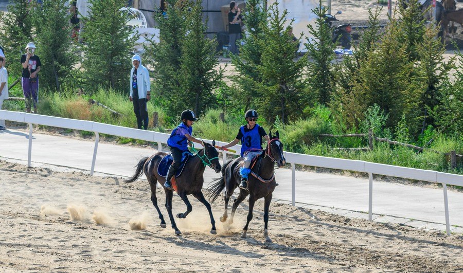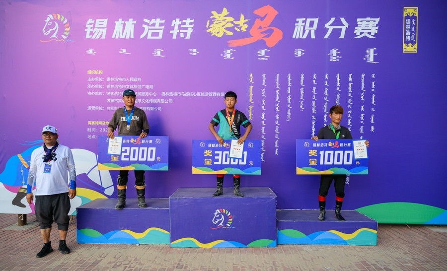 錫林浩特蒙古馬積分賽,自7月6日開賽以來,已連續(xù)舉行了兩場比賽(7月6日、7月13日),并將持續(xù)到9月1日。期間,每個(gè)周六15:00舉行速度賽1000米145CM(含)以下(2周歲馬)和15公里接力賽;每個(gè)周日15:00舉行拾哈達(dá)、跑馬射箭、145CM以下蒙古馬繞桶等項(xiàng)目。其中8月31日15:00舉行速度賽1000米145CM(含)以下(2周歲馬)和15公里接力賽總決賽,9月1日15:00舉行30公里耐力賽總決賽。