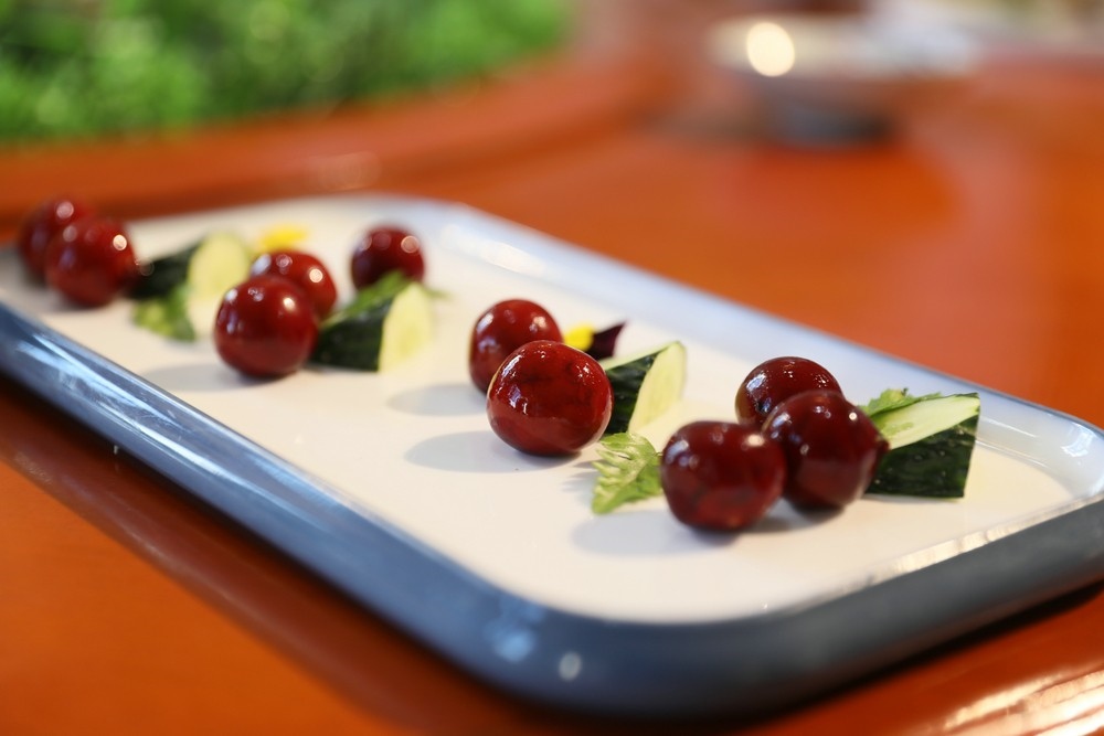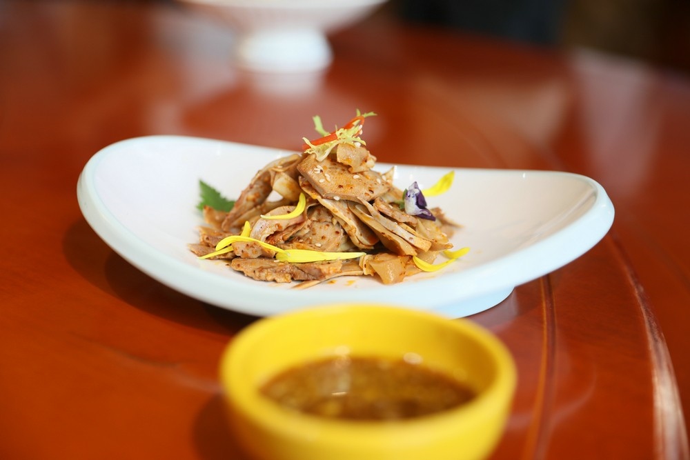 首次亮相的羊雜宴席分涼菜、熱菜、湯羹、主食等共18個(gè)菜品,包括櫻桃松露羊肝、扎蒙花拌耳舌、香辣手撕羊心、王爺精片蹄花、胡麻鹽干山尾、養(yǎng)生羊腦藜麥粥 、羊隨布拉塔番茄、草原風(fēng)味毛血旺 、松茸焗羊雜煲、茶香伴侶雙寶 、黃柿子肚絲湯 、鮮羊肝披薩餅等,而首次登上羊雜宴席的羊雜燒麥也是菜品中的一大亮點(diǎn)。伴隨著國家級烹飪大師、羊雜宴席領(lǐng)銜主廚岳俊杰的介紹,“沒想到”“好吃”之類的驚嘆成為品鑒會(huì)的高頻詞。