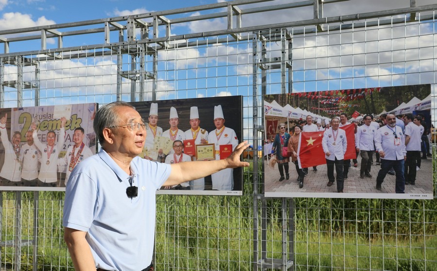 7月28日,第14屆《食色世界》攝影大展,在四子王旗格根塔拉草原旅游中心開(kāi)展。圖為本次攝影展策展人、中國(guó)攝影家協(xié)會(huì)會(huì)員、中國(guó)人像攝影學(xué)會(huì)副會(huì)長(zhǎng)、內(nèi)蒙古攝影家協(xié)會(huì)名譽(yù)主席郎立興正在介紹展品。