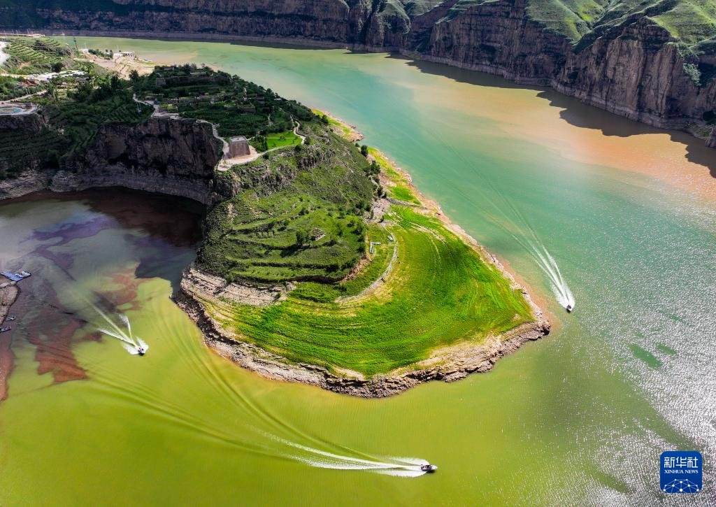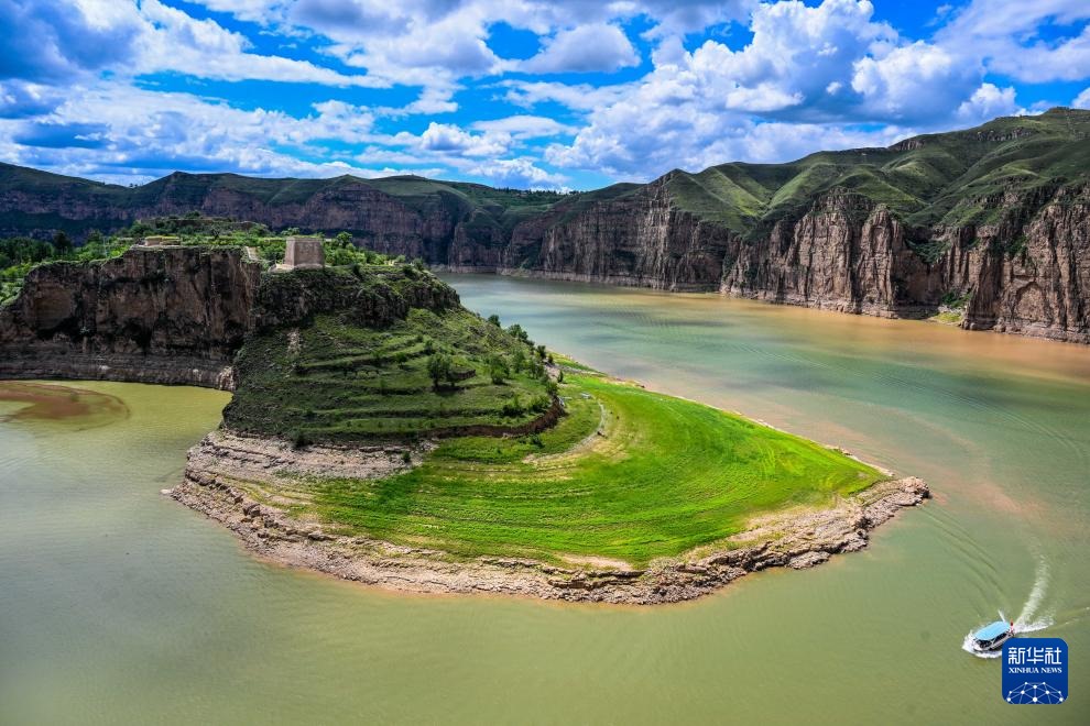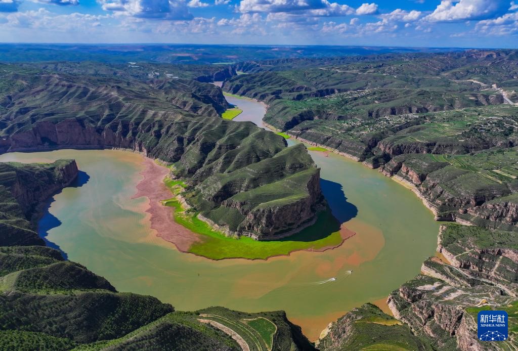 ??這是8月12日拍攝的黃河老牛灣風光(無人機照片)。
