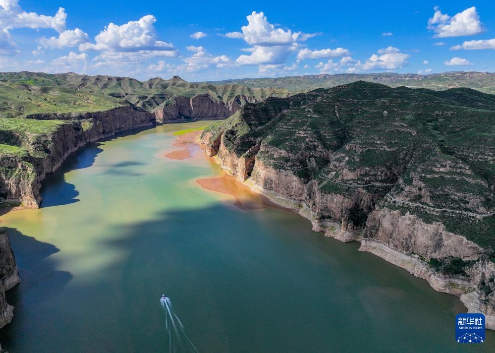 ??這是8月12日拍攝的老牛灣北側的一處黃河峽谷(無人機照片)。