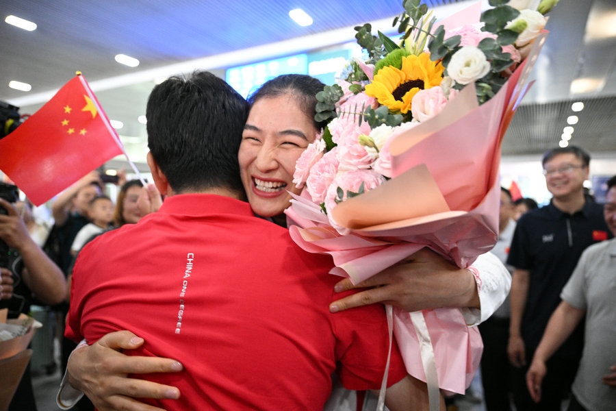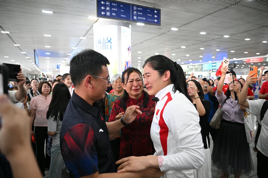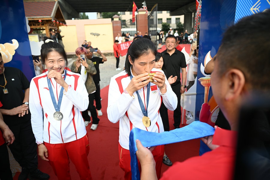 8月15日,征戰(zhàn)巴黎奧運會的內(nèi)蒙古健兒李倩、楊柳乘坐高鐵,從北京回到呼和浩特。李倩在巴黎奧運會斬獲女子75公斤級金牌,楊柳摘得女子66公斤級銀牌。奧運健兒載譽歸來,身在家鄉(xiāng)的親朋好友、隊友教練為她們準備了盛大的歡迎儀式。(記者 李艷紅 李文華 林則志 石茹意)
