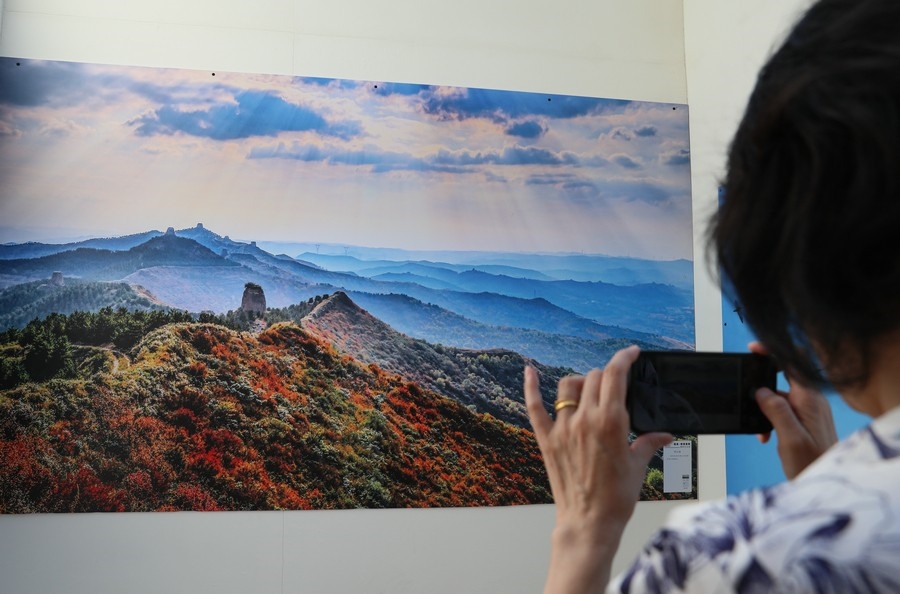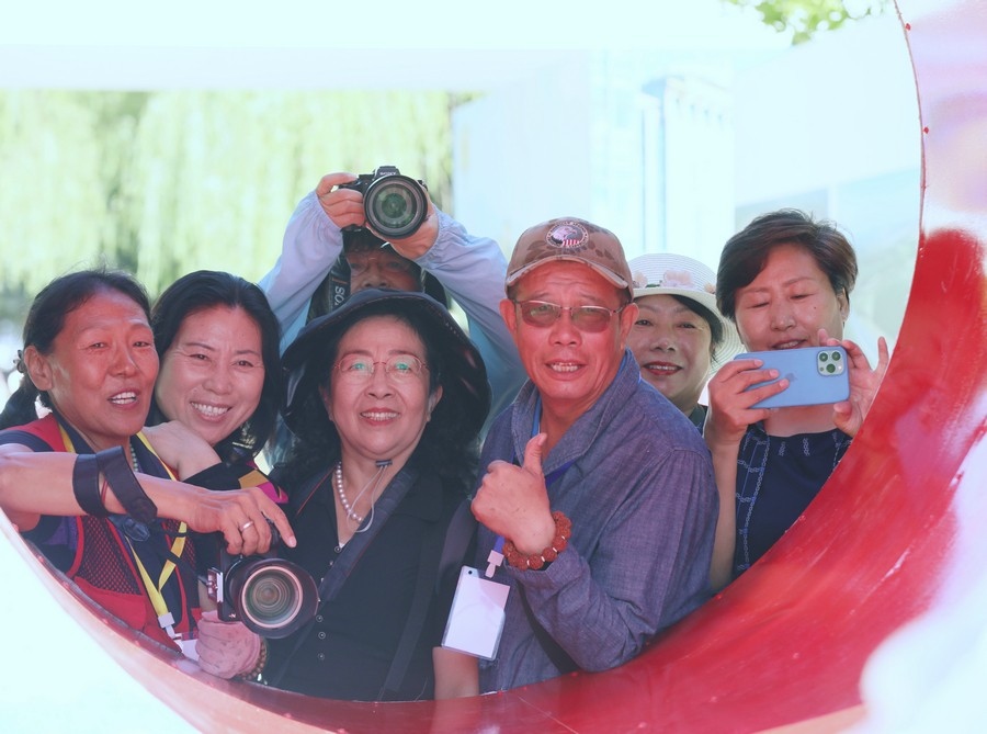 游客在呼和浩特?cái)z影周參觀(guān)拍照