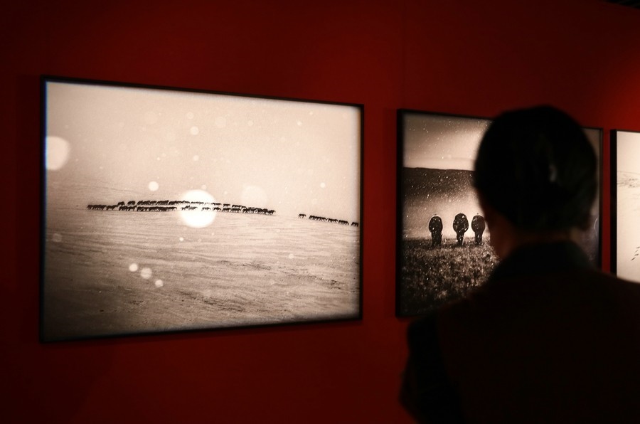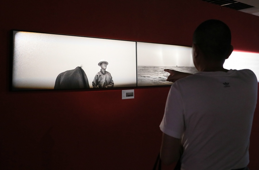 游客在參觀(guān)“蒙古馬精神”阿音攝影作品展