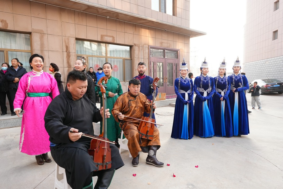 烏蘭牧騎演員唱起迎賓曲迎接親人