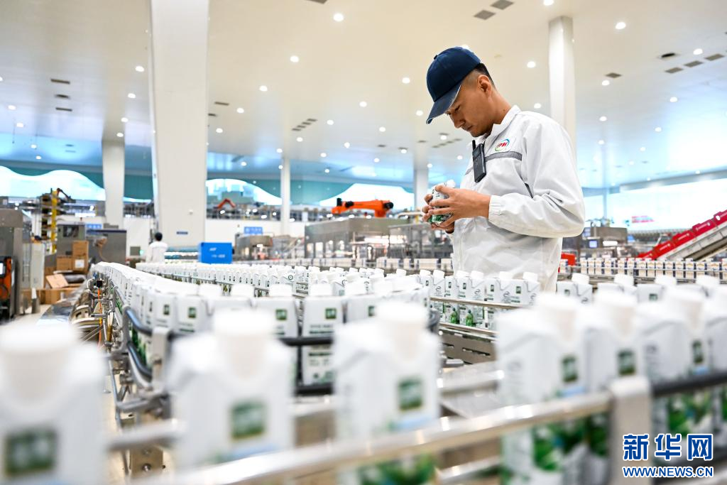 1月9日,在呼和浩特市伊利現代智慧健康谷液態(tài)奶全球智造標桿基地,工人在生產線上檢查奶制品包裝情況。