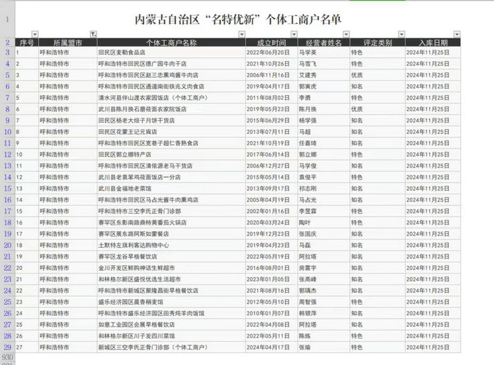 北疆新聞呼和浩特2月19日消息(記者 張鑫)近日,呼和浩特市首批27戶個(gè)體工商戶獲評全國“名特優(yōu)新”個(gè)體工商戶,覆蓋餐飲、批發(fā)零售、食品加工、居民服務(wù)等多個(gè)行業(yè)領(lǐng)域。