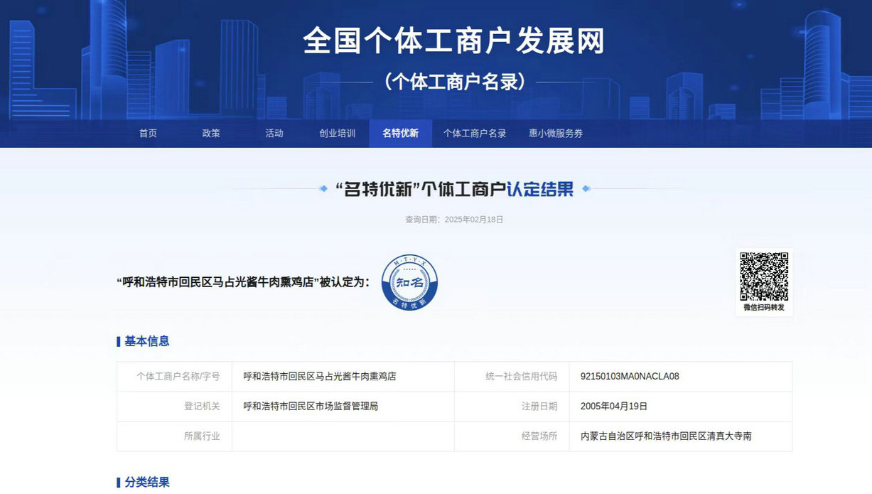 去年,呼和浩特市市場監(jiān)管局等16個(gè)市級部門聯(lián)合制定實(shí)施《呼和浩特市個(gè)體工商戶分型分類實(shí)施方案(試行)》,開展“名特優(yōu)新”個(gè)體工商戶申報(bào)和推薦工作。通過線上線下雙渠道,利用個(gè)體工商戶服務(wù)月活動,向廣大個(gè)體工商戶普及申報(bào)政策和流程,鼓勵(lì)符合條件的個(gè)體工商戶參與申報(bào)。通過材料審核、走訪核實(shí)、征求意見、評審認(rèn)定、信息公示等程序,經(jīng)區(qū)縣、市、自治區(qū)逐級復(fù)核上報(bào),呼和浩特市首批認(rèn)定全國“名特優(yōu)新”的27戶個(gè)體工商戶已完成入庫(其中“知名”15戶、“特色”10戶、“優(yōu)質(zhì)”2戶),被認(rèn)定的個(gè)體工商戶可享受由國家、自治區(qū)、市出臺的相關(guān)扶持培育政策。
