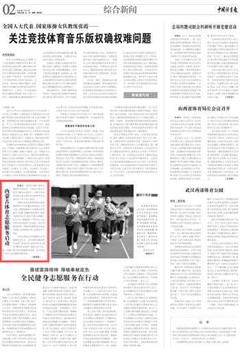 2024年3月11日,《中國體育報(bào)》第2版刊發(fā)題為《內(nèi)蒙古體育志愿服務(wù)啟動(dòng)》的文章,報(bào)道了2025年內(nèi)蒙古體育志愿服務(wù)啟動(dòng)儀式,日前在大青山國家登山健身步道舉行。內(nèi)蒙古自治區(qū)24家企事業(yè)單位和56家體育社會(huì)組織的千余人參與活動(dòng)。