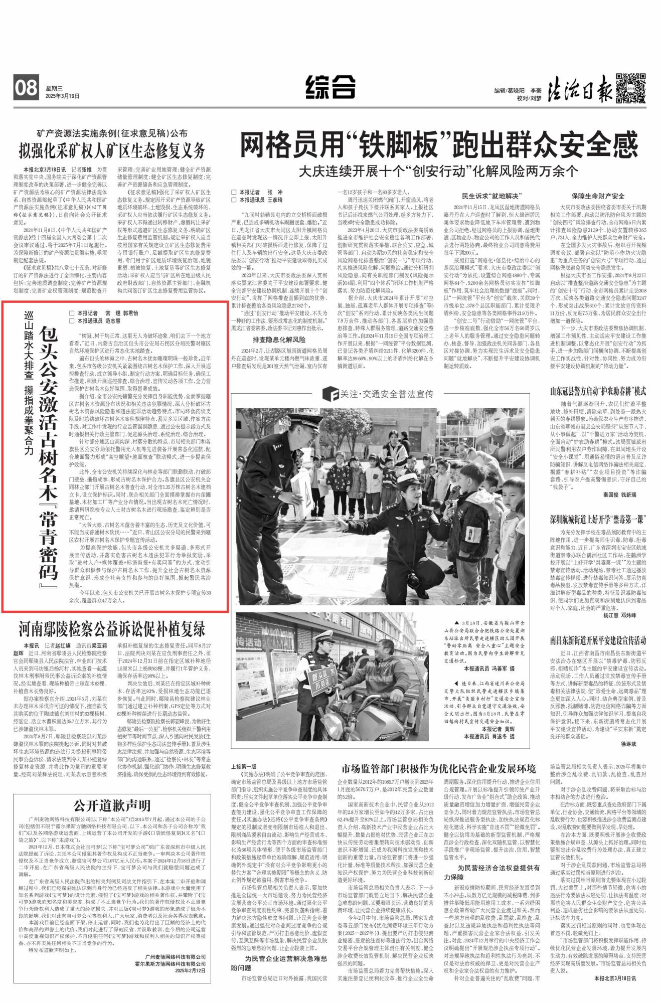 2025年3月19日,《法治日報》第8版刊發(fā)題為《巡山踏水大排查 攥指成拳聚合力 包頭公安激活古樹名木“常青密碼”》的文章,報道了近年來,包頭市各級公安機關(guān)緊緊圍繞古樹名木保護工作,深入開展巡控排查行動,成立領(lǐng)導(dǎo)小組、制定行動方案、明確目標任務(wù)、確保工作推進,積極開展巡控排查、綜合治理、宣傳發(fā)動各項工作,全力營造保護古樹名木良好氛圍,取得顯著成效。