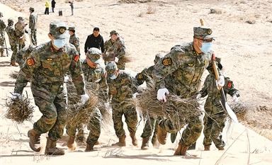 2025年5月6日《中國國防報(bào)》第1版刊發(fā)了《內(nèi)蒙古巴彥淖爾軍分區(qū)發(fā)動民兵參與烏蘭布和沙漠治沙攻堅(jiān)戰(zhàn) 植樹造林戰(zhàn)“黃龍”》的文章,報(bào)道了連日來,內(nèi)蒙古巴彥淖爾市民兵到烏蘭布和沙漠植樹造林。為植樹造林鎖住“黃龍”,當(dāng)?shù)剀娒衤?lián)手筑起了一道48公里長的綠色屏障。據(jù)氣象部門數(shù)據(jù)顯示,近年來,當(dāng)?shù)厣硥m暴、干熱風(fēng)、浮塵天氣年平均日數(shù)顯著下降。