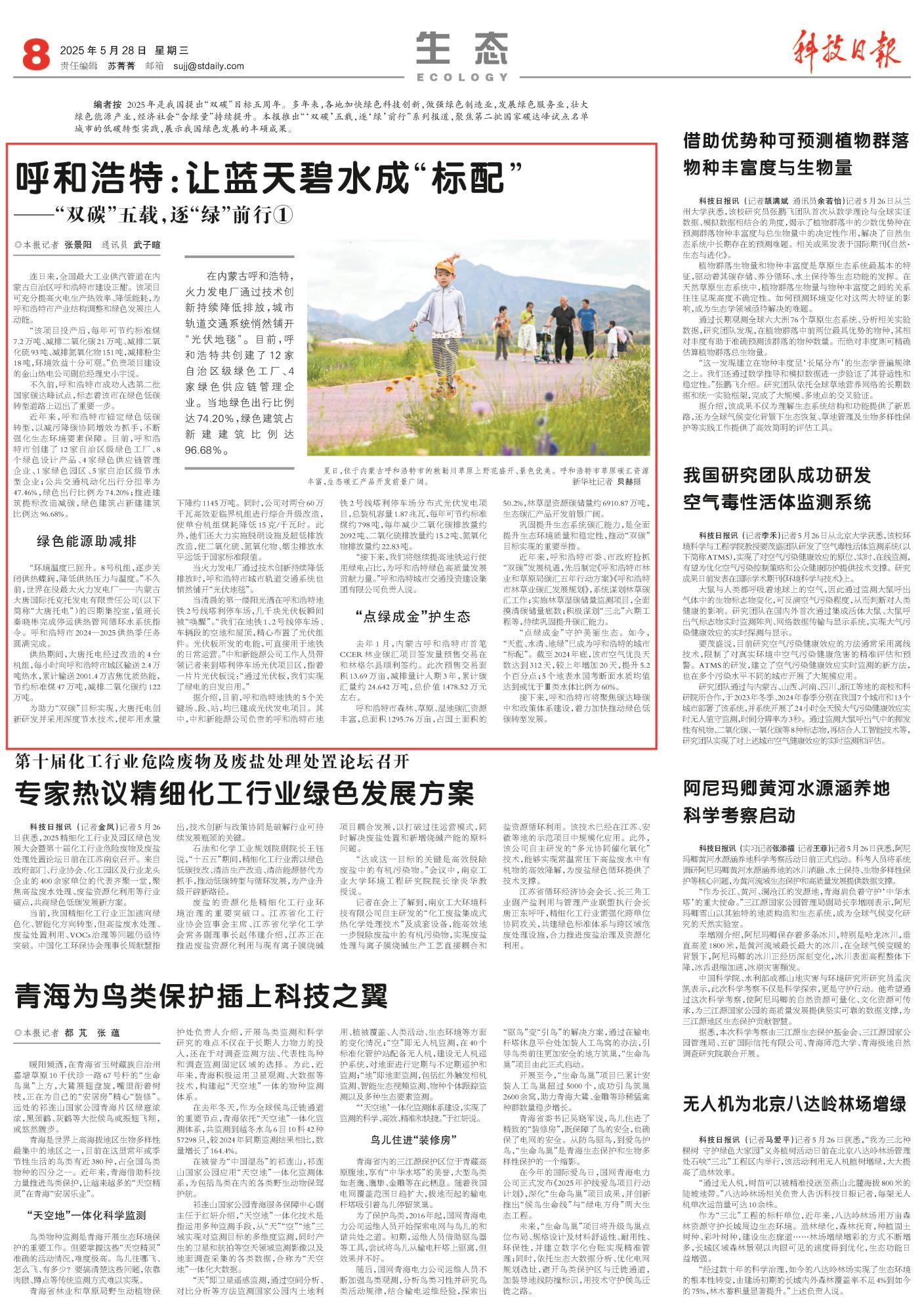 2025年5月28日,《科技日報》第8版刊發(fā)了《呼和浩特:讓藍天碧水成“標配”——“雙碳”五載,逐“綠”前行①》的文章,報道了內蒙古呼和浩特“點綠成金”守護美麗生態(tài)?;鹆Πl(fā)電廠通過技術創(chuàng)新持續(xù)降低排放,城市軌道交通系統(tǒng)悄然鋪開“光伏地毯”?!疤焖{、水清、地綠”已成為呼和浩特的城市“標配”。