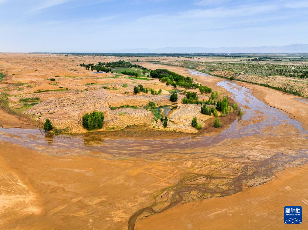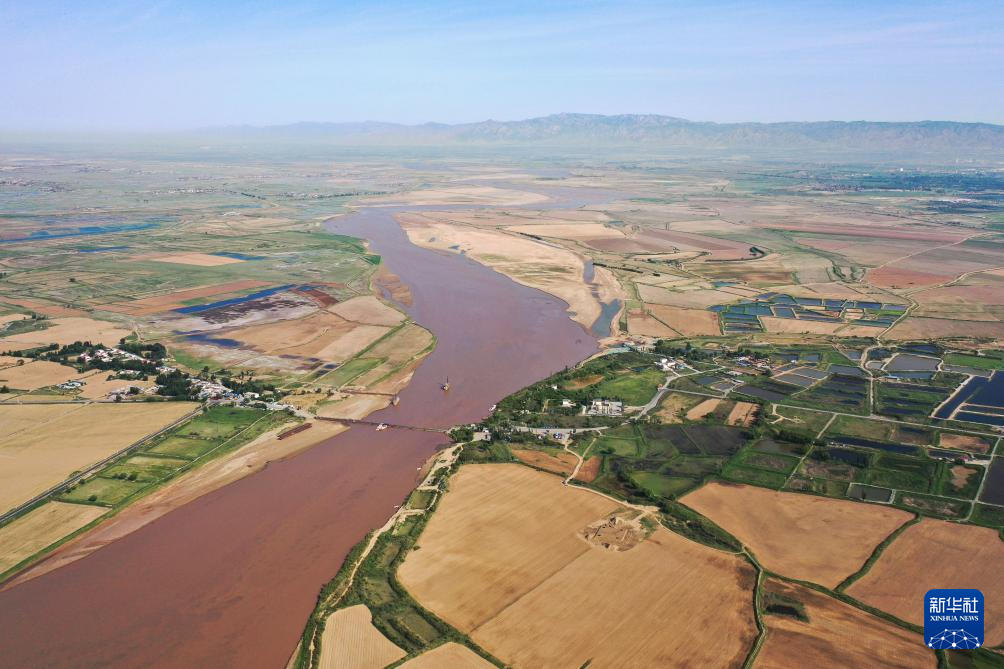 在巴彥淖爾市磴口縣劉拐沙頭,黃河蜿蜒而過(6月5日攝,無人機照片)新華社記者 連振 攝