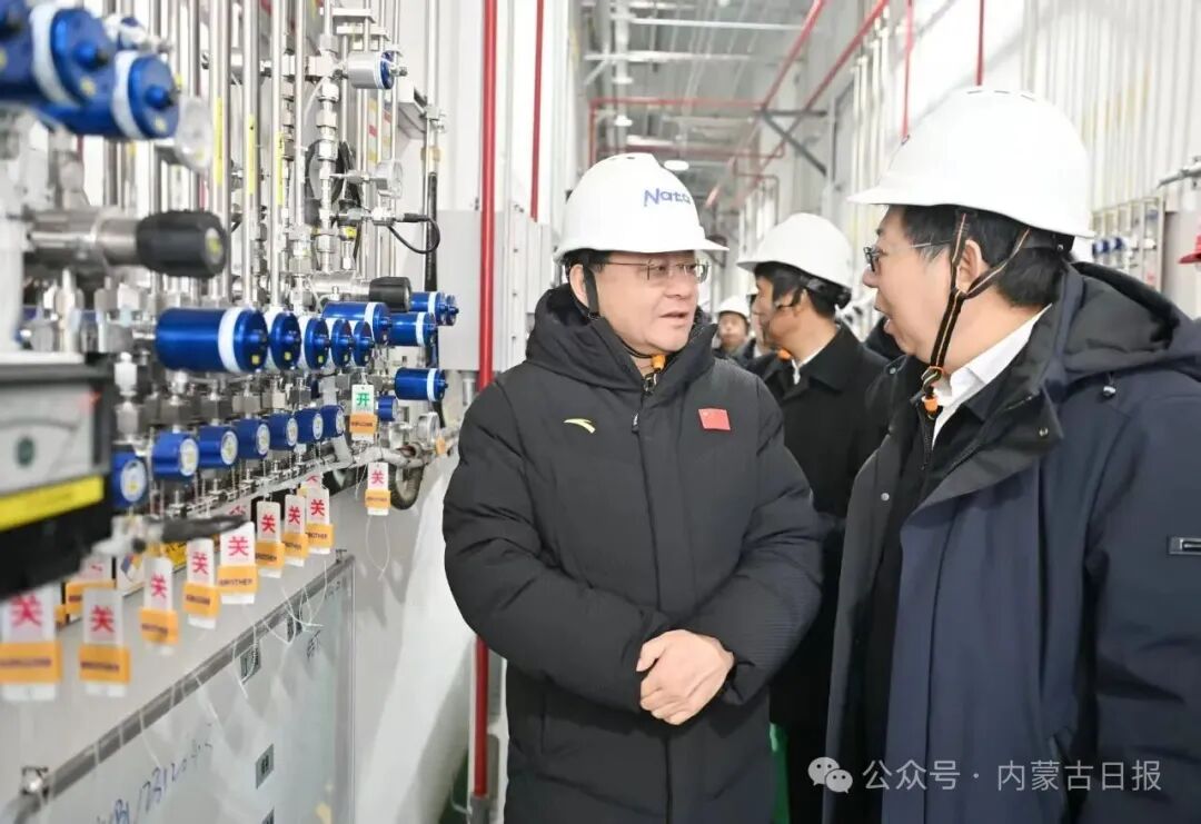 12月2日,自治區(qū)黨委書記王偉中在南大光電(烏蘭察布)有限公司察看高純電子級三氟化氮生產(chǎn)情況。草原云·內(nèi)蒙古新聞網(wǎng)記者 馬建兵 攝