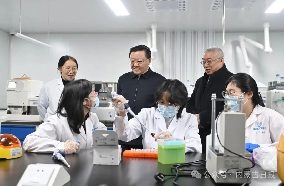 12月16日,自治區(qū)黨委書記王偉中在省部共建草原家畜生殖調(diào)控與繁育國家重點(diǎn)實(shí)驗(yàn)室了解生物育種研發(fā)進(jìn)展情況。草原云·內(nèi)蒙古新聞網(wǎng)記者 馬建兵 攝