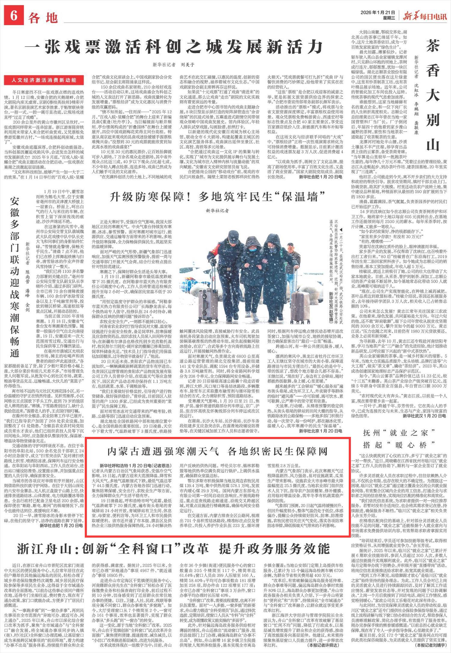 2026年1月21日《新華每日電訊》第6版刊發(fā)了《內(nèi)蒙古遭遇強(qiáng)寒潮天氣 各地織密民生保障網(wǎng)》的文章,報(bào)道了內(nèi)蒙古迎來大范圍降溫、降雪和大風(fēng)天氣,多地氣溫?cái)嘌率较碌畹蜌鉁剡_(dá)零下44.5攝氏度。各地各部門迅速行動(dòng),聚焦防寒保暖、安全出行、農(nóng)牧業(yè)生產(chǎn)等方面,全力保障群眾生產(chǎn)生活平穩(wěn)有序。