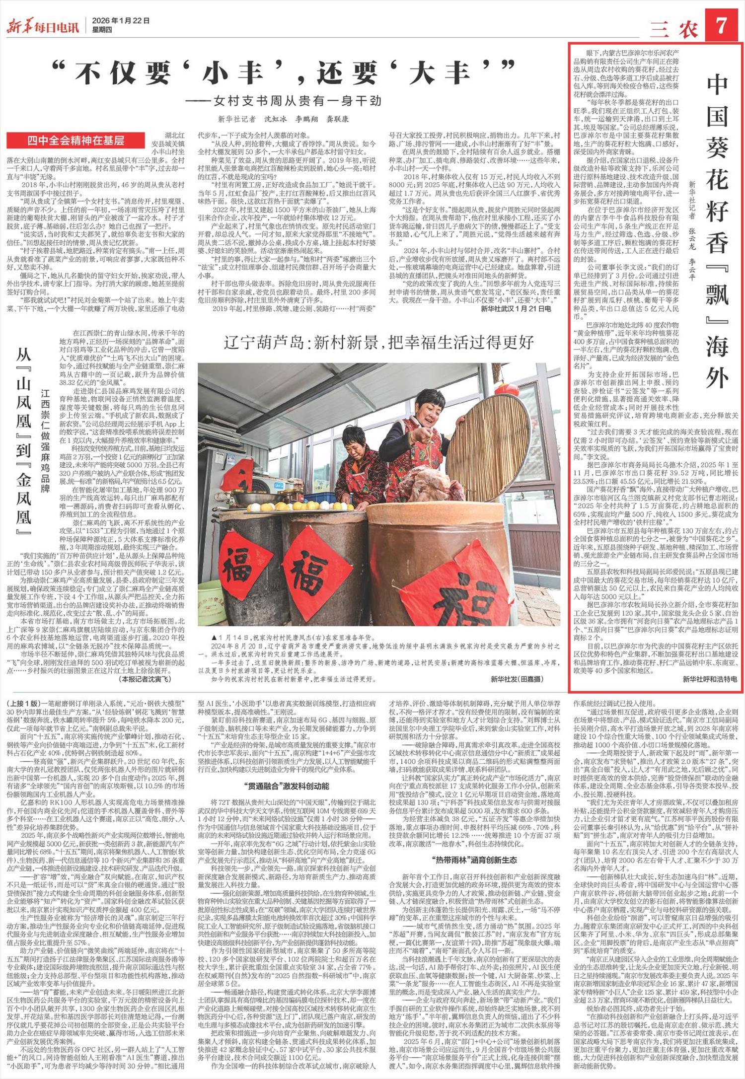 2026年1月22日《新華每日電訊》第7版