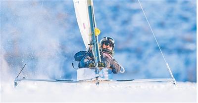 冰帆又稱“冰上快艇”,是近幾年興起的戶外運動項目。與尋常帆船比賽不同,冰帆賽的場地并非海面,而是一片光滑如鏡的冰面。冰帆的獨特之處在于船體下方配置了冰刀,選手們操縱帆具,僅憑自然風(fēng)力,就能在冰面上揚帆。相較普通帆船,冰帆的操作更為簡易,冰刀相當(dāng)于輪子,風(fēng)帆相當(dāng)于發(fā)動機。比賽場地寬200米以上、長700米以上,風(fēng)力平穩(wěn)保持在2級以上,賽時選手躺在帆船中以減少風(fēng)阻。