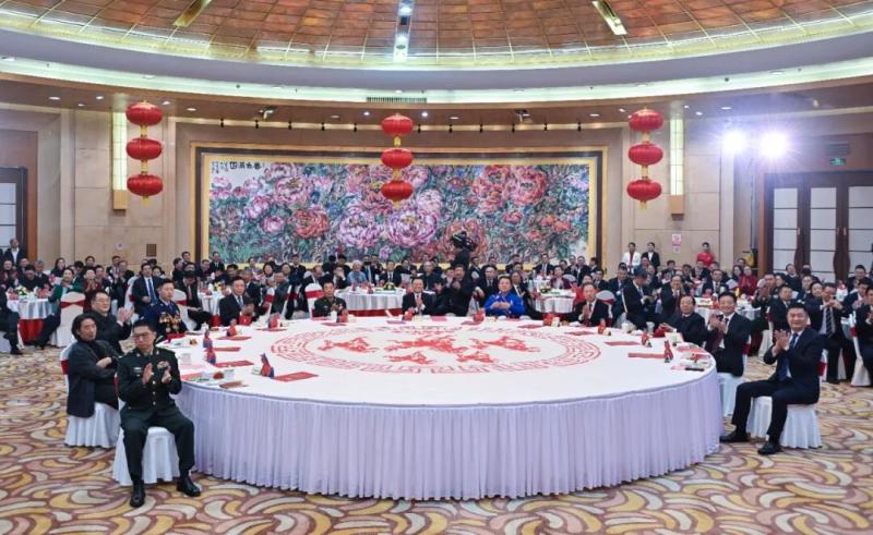 新城賓館國宴廳內(nèi)張燈結(jié)彩,與會各界人士互致問候、祝福新春,現(xiàn)場洋溢著歡樂喜慶的節(jié)日氣氛。