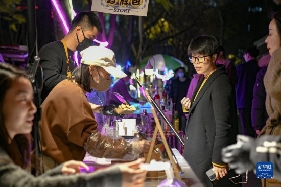 這是2月28日在四川省成都市錦江區(qū)拍攝的三色路夜市。