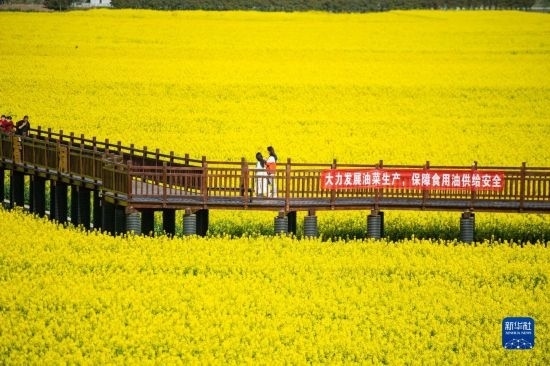 近日,湖南省常德市鼎城區(qū)十美堂鎮(zhèn)種植的數(shù)萬畝油菜花競相綻放,金燦燦的油菜花海吸引游客前來賞花游玩。近年來,十美堂鎮(zhèn)將油菜產(chǎn)業(yè)與文旅產(chǎn)業(yè)深度融合,帶動(dòng)鄉(xiāng)村餐飲、民宿等產(chǎn)業(yè)發(fā)展,助力鄉(xiāng)村振興。
