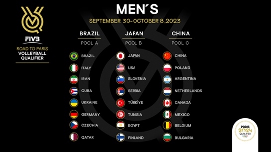 男排資格賽將于2023年9月30日至10月8日分別在中國、日本和巴西舉行,分組抽簽規(guī)則與女排相同。經(jīng)過抽簽,A組球隊(duì)分別是巴西、意大利、伊朗、古巴、烏克蘭、德國、捷克、卡塔爾;B組為日本、美國、斯洛文尼亞、塞爾維亞、土耳其、突尼斯、埃及、芬蘭;中國與波蘭、阿根廷、荷蘭、加拿大、墨西哥、比利時(shí)和保加利亞分在C組。