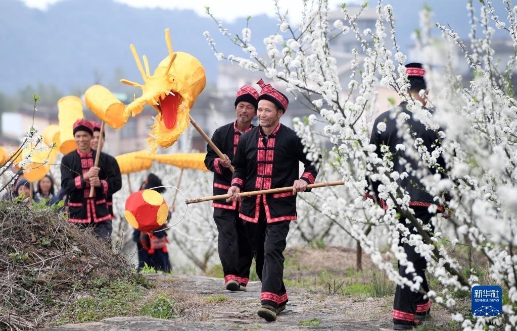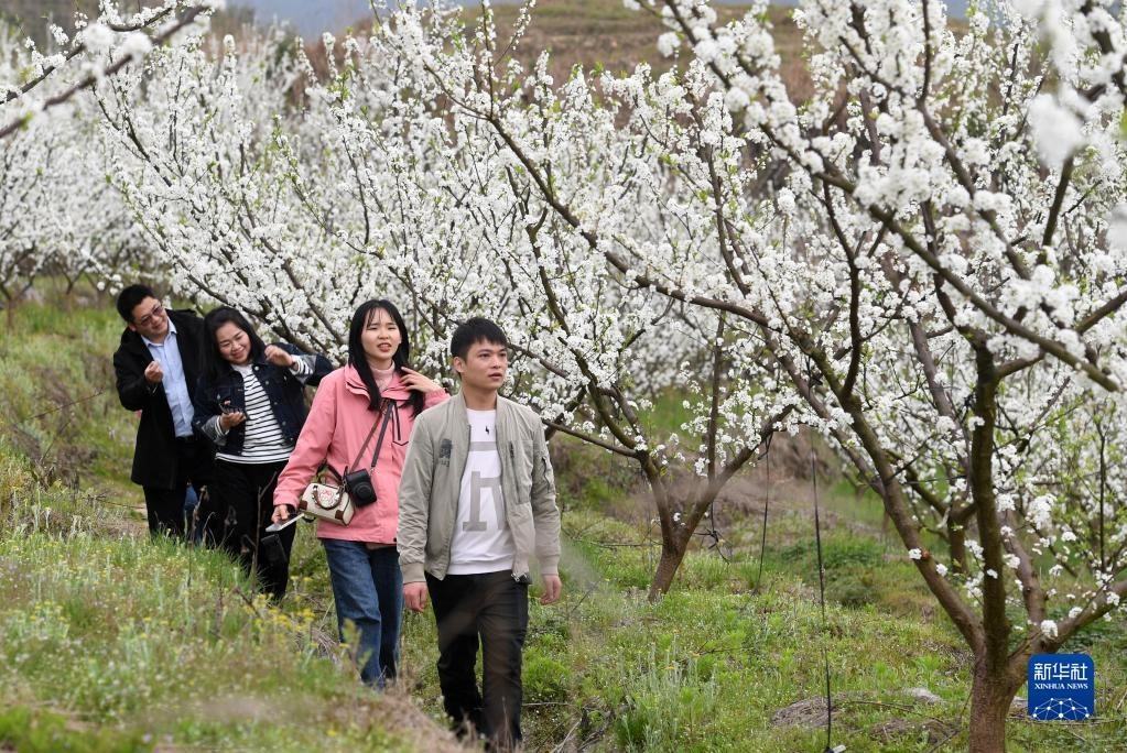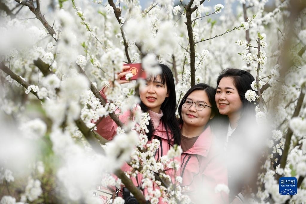 3月17日,在廣西金秀瑤族自治縣忠良鄉(xiāng)巴勒村,游客在賞花拍照。眼下,廣西金秀瑤族自治縣忠良鄉(xiāng)巴勒村李花綻放,吸引游客前來(lái)踏春賞花。新華社記者 陸波岸 攝
