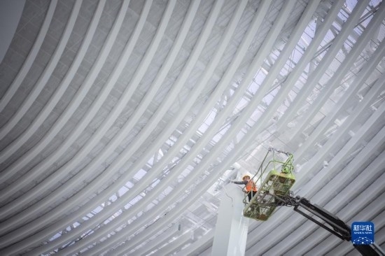 5月1日,中建八局的施工人員在長沙機場改擴建工程T3航站樓工程項目現(xiàn)場作業(yè)。