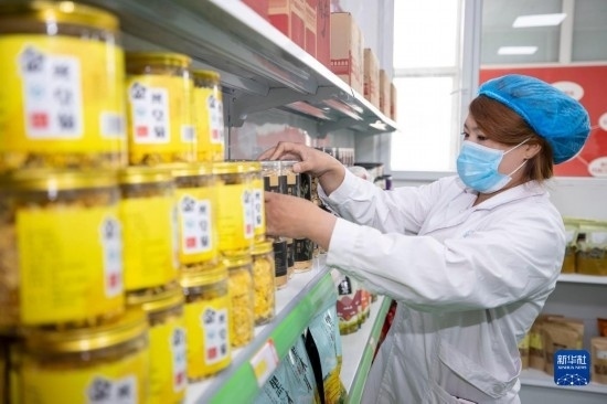 5月1日,在寧夏銀川市永寧縣閩寧鎮(zhèn)禾美電商車間,工作人員在打包產(chǎn)品。