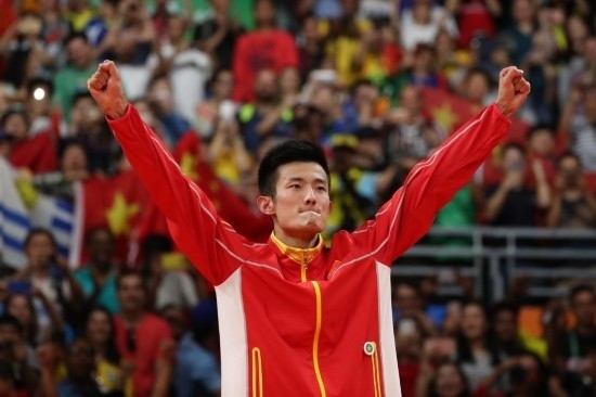資料圖:2016年8月20日,諶龍?jiān)诶锛s奧運(yùn)會(huì)羽毛球男子單打決賽頒獎(jiǎng)儀式上。 新華社/歐新中文