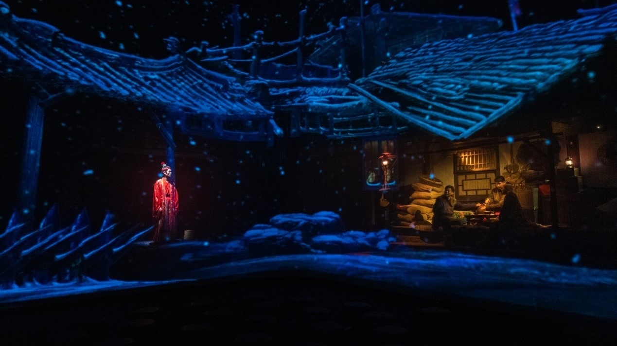 只有紅樓夢(mèng)·戲劇幻城還將“亦真亦假、榫卯拼接、虛實(shí)留白、輪回轉(zhuǎn)世”等中國式哲思與美學(xué)理念,運(yùn)用到戲劇創(chuàng)作與景觀設(shè)計(jì)中。從幻城入口處16扇風(fēng)格迥異的“中國門”開始,到幻城中隨處可見的“留白”、“古建”與“方塊字”,在如迷宮幻境一般的建筑空間中,創(chuàng)新式的用最中國的方式講述中國的故事。