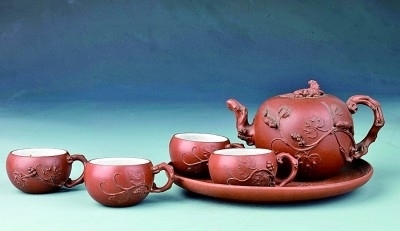在陶瓷單元,來自全國七個產(chǎn)區(qū)的陶器、瓷器和陶瓷雕塑在材料、工藝、功能、題材、造型、裝飾等方面各具特色。江蘇宜興紫砂陶器因透氣性能優(yōu)良,以茶具、花盆聞名。清初名家陳孟瀛的“紫砂水仙盆”造型質(zhì)樸,書畫裝飾清新雅致;現(xiàn)代名家朱可心的茶具以松鼠葡萄為題材,寓意多子多福、豐收吉祥。云南建水紫陶多以不同顏色的陶泥刻填書畫,形成具有地方特色的“殘?zhí)毖b飾,文人氣息濃厚,如向逢春的“紫陶刻填殘?zhí)B紋瓶”,丁吉三制陶、馬吉生作畫、孟松題詩的“紫陶雙耳四方瓶”等。湖南銅官陶器以綠色、褐色釉為主,多為雙連調(diào)味罐、水壺等日用器皿。安徽界首陶器的剔地留花工藝和武戲“刀馬人”裝飾獨具特色,名家以盧山義為代表。江西景德鎮(zhèn)是傳統(tǒng)瓷區(qū),產(chǎn)量大,行銷廣,青瓷、青花、古彩等品種豐富,彩繪、浮雕等工藝精湛,如“青花龍紋盤”以鏤雕透光的“玲瓏眼”工藝為特色;“青瓷浮雕一品當朝紋盤”繪仙鶴立于潮頭,寓意聲名顯赫;名家王步的“青花白菜圖盤”以中國傳統(tǒng)繪畫兼工帶寫的手法繪制白菜形象,既富生活雅趣,又寓發(fā)財之意。江西美術(shù)工作室則以現(xiàn)實題材、寫實風格為特色,曾龍升創(chuàng)作的瓷塑“牧童牛上比英雄”傳遞出“老幼互相忙生產(chǎn),要為祖國立大功”的時代之聲。福建德化白瓷以瓷塑見長,傳統(tǒng)題材為主。廣東石灣陶器則以陶塑見長,題材多具自然情趣與生活氣息,亦有表現(xiàn)時代題材的作品。