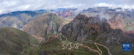 6月17日在國道317線昌都段丁青縣附近拍攝的鄉(xiāng)村公路景觀(無人機照片)。