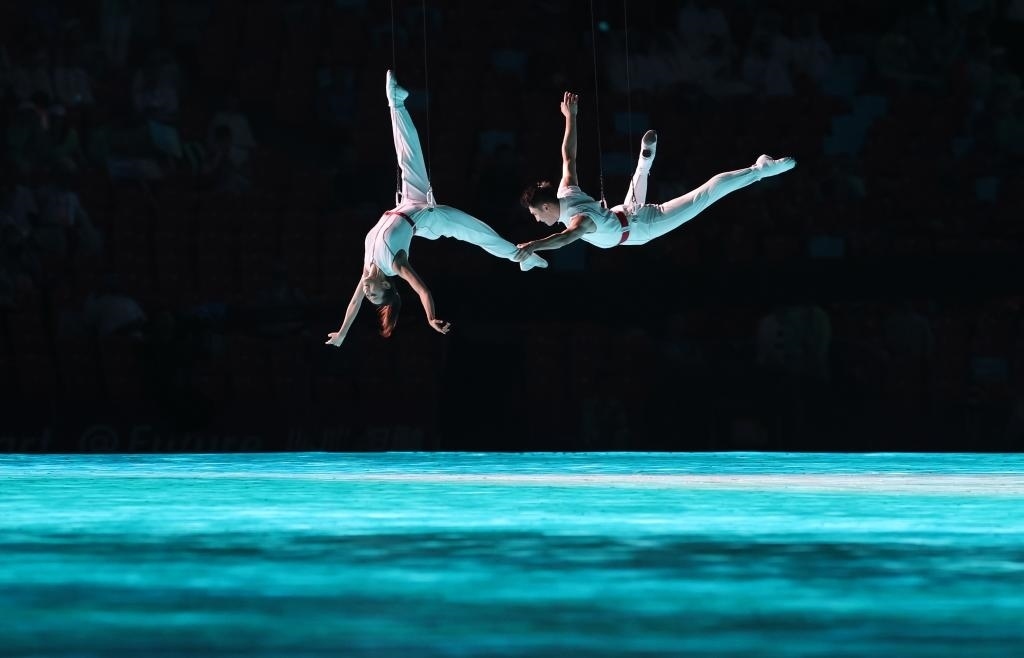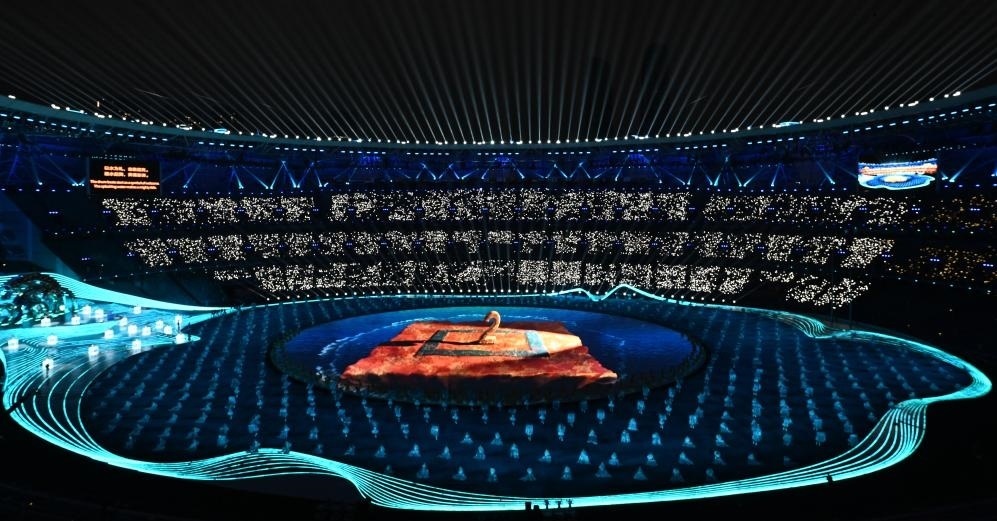 開幕式實現(xiàn)了兩個首創(chuàng):3D雙威亞首次應用于大型運動場,首次采用“數(shù)實融合”的點火方式。