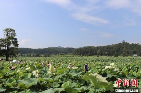專程從海南前來游玩的蘇桂除,亦被此行濃濃的荷風蓮韻所驚艷?!皬某菂^(qū)街頭巷尾的蓮元素景觀,到沿途處處可見的綻放荷花,從一粒蓮子到一桌蓮宴,蓮鄉(xiāng)之行讓我印象深刻,有機會還會帶著家人過來賞花品蓮。” (姜濤 熊錦陽)