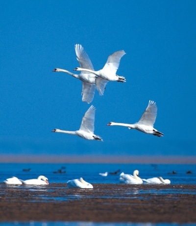 烏梁素海的良好生態(tài)吸引了天鵝棲息。烏拉特前旗融媒體中心供圖