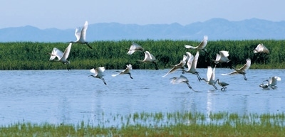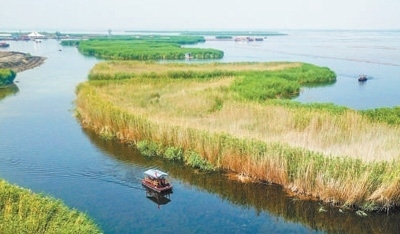 水清草綠的湖泊濕地。本報記者 張 棖攝