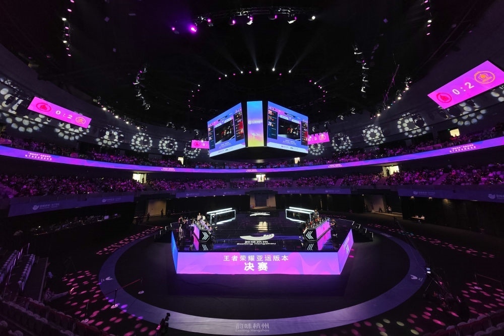 這是在杭州電競中心拍攝的“韻味杭州”電子競技全國邀請賽王者榮耀亞運版決賽現(xiàn)場(2023年5月21日攝)。新華社記者 黃宗治 攝
