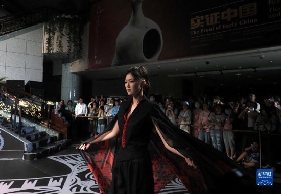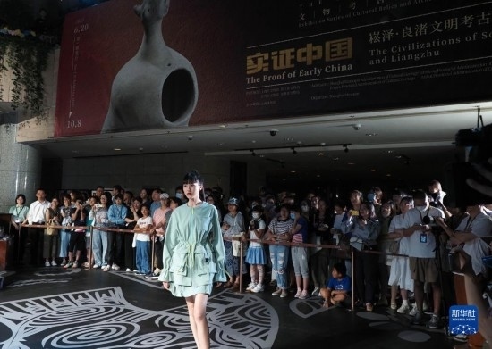 8月25日晚,模特在上博“研色·良渚之夜”綜合藝術(shù)秀上展示時(shí)裝。新華社記者 任瓏 攝