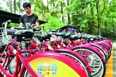 杭州共享單車上的亞運(yùn)會吉祥物圖案。本報記者陳茵攝 光明圖片