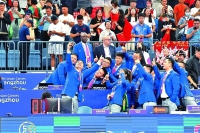 10月5日,女籃決賽后,技術(shù)官員在自拍合影。 本報記者 陳茵攝/光明圖片