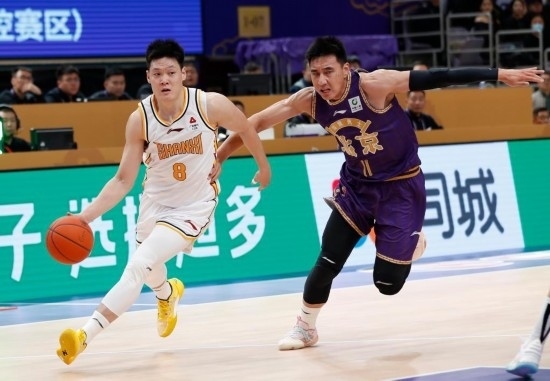 2022年3月1日,效力于新疆隊(duì)的曾令旭(右)在當(dāng)年的CBA比賽中帶球突破。新華社記者 盧漢欣 攝