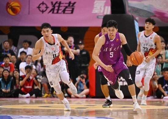 6月18日,當(dāng)時(shí)效力于清華大學(xué)隊(duì)的鄒陽(yáng)(右二)在CUBAL總決賽中帶球突破。新華社記者 胥冰潔 攝
